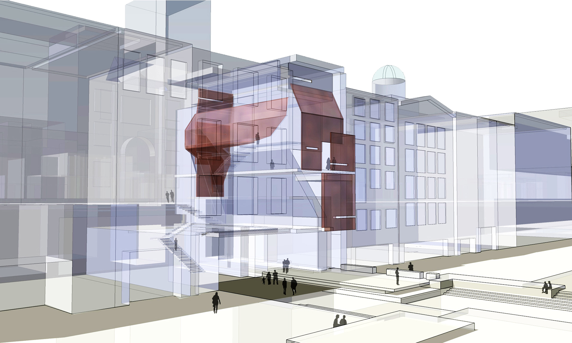 Urban infill project in Savannah, Georgia. Engaging the street on the front and opening up into public venue along the river on the back.